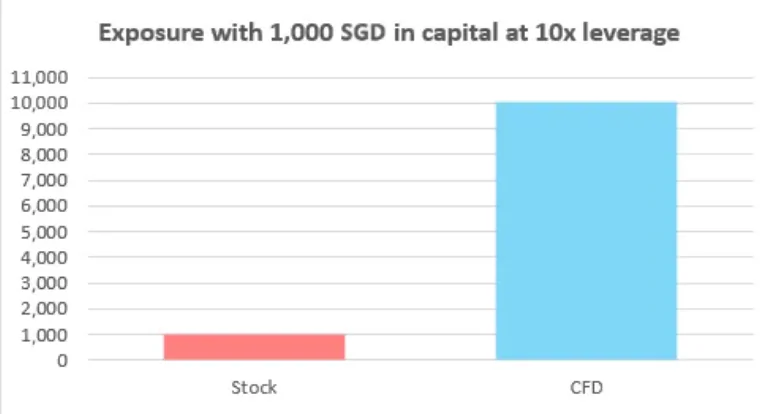 As you can see from the above table, with only S$1,000, you can gain exposure to up to S$10,000 worth of stocks, or 10X more than investing in stocks. That said, while higher exposure means you can also potentially amplify your profits, your potential loss is also amplified.