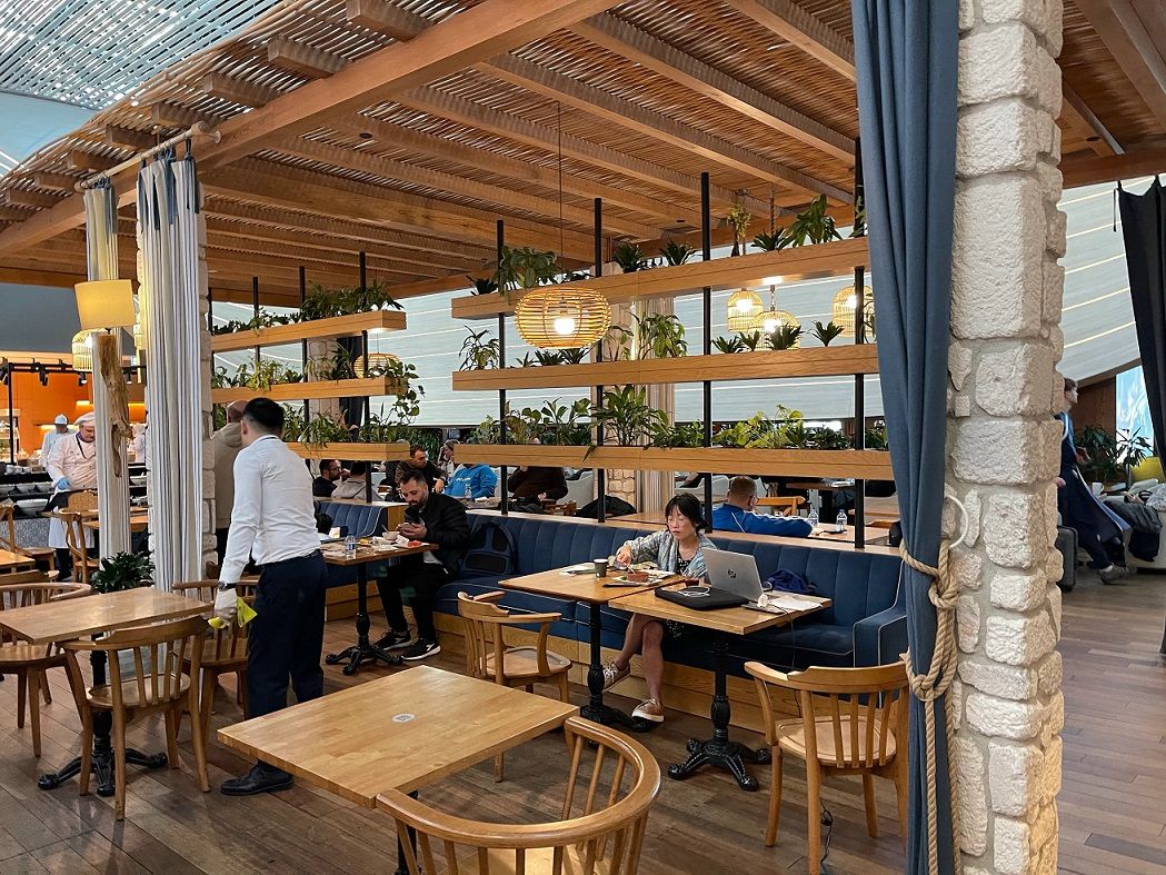 For many Singaporeans on their way to Europe, the Qatar Airways Al Mourjan Business Lounge – The Garden is a must-visit. Known for its tranquil garden space and wellness areas, it’s a perfect stopover spot to recharge. The lounge also features a sushi station for those craving a bite, offering a blend of relaxation and indulgence in a beautiful setting.