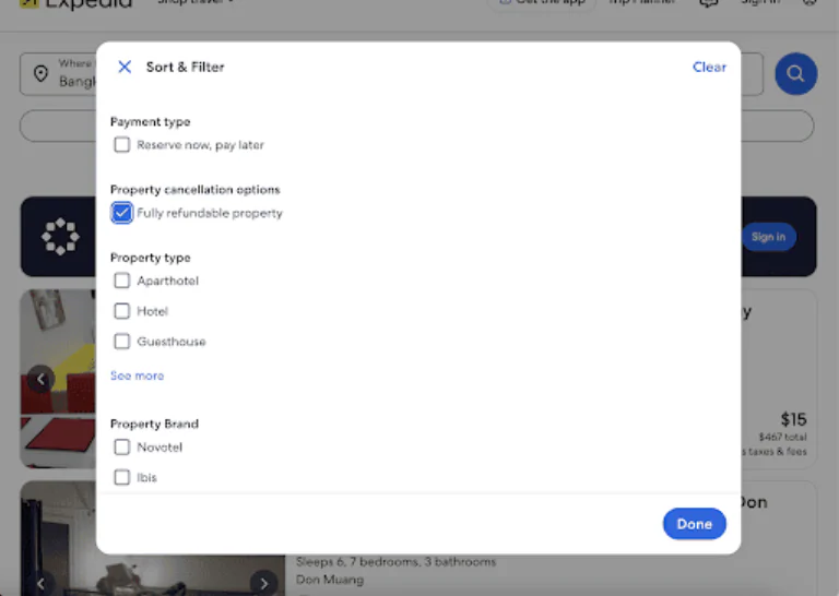 Use the “Fully Refundable” filter when booking hotels. For flights, you’ll typically get a full refund if you cancel within 24 hours before your first flight— a policy aligned with most airline terms.