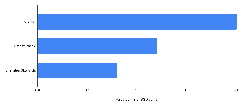 We evaluated our airline rewards programmes based on their value per mile in Singapore dollars.