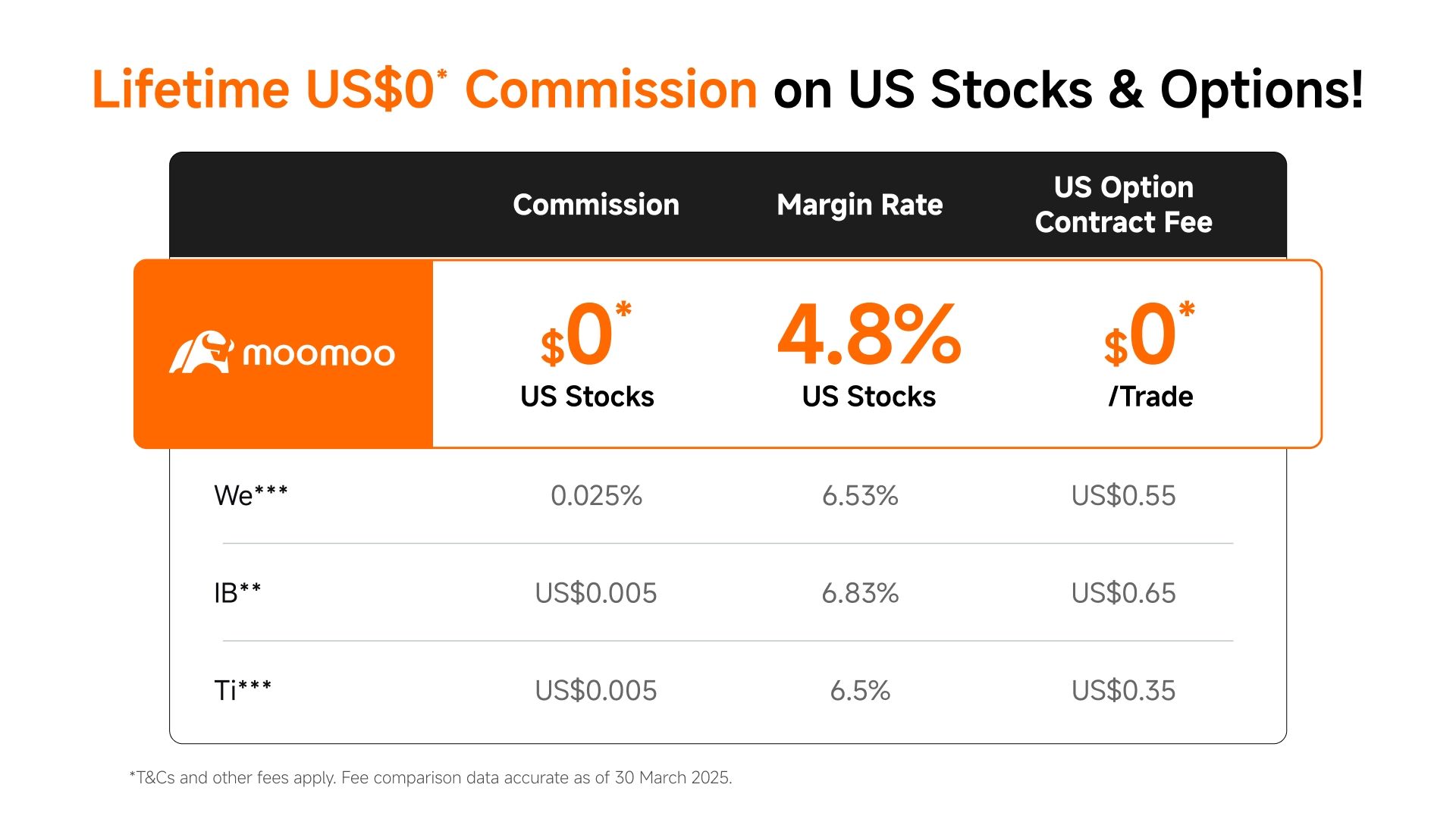 All moomoo members enjoy 0* commissions on US stocks, which means you get to keep more of your returns. And to keep trading costs low, the platform fee is charged at US$0.99 per order. This is a flat rate, which means you don’t have to worry about paying higher fees for larger orders!