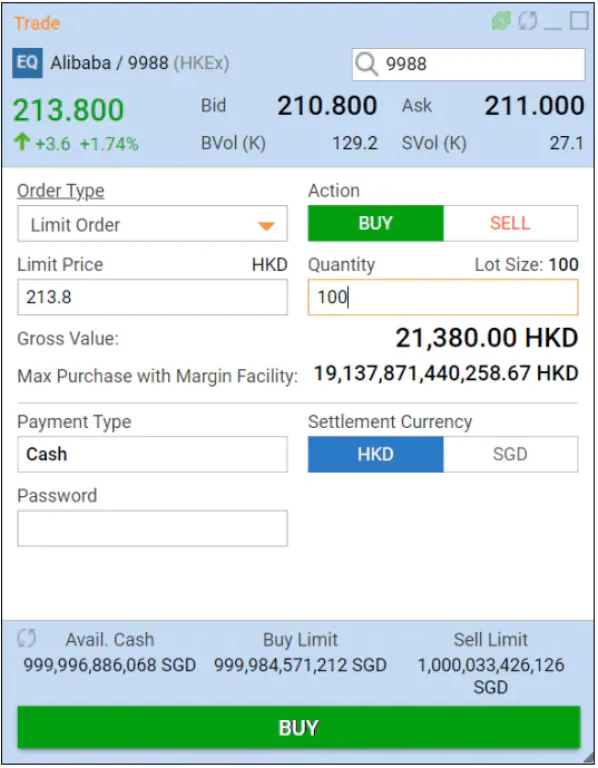 You set a limit price, and the order will execute only if the stock is trading at or above that price. For example, if you set a limit order to sell Stock XYZ at S$41, the order will execute only if the stock price rises to S$41 or above on the SGX.