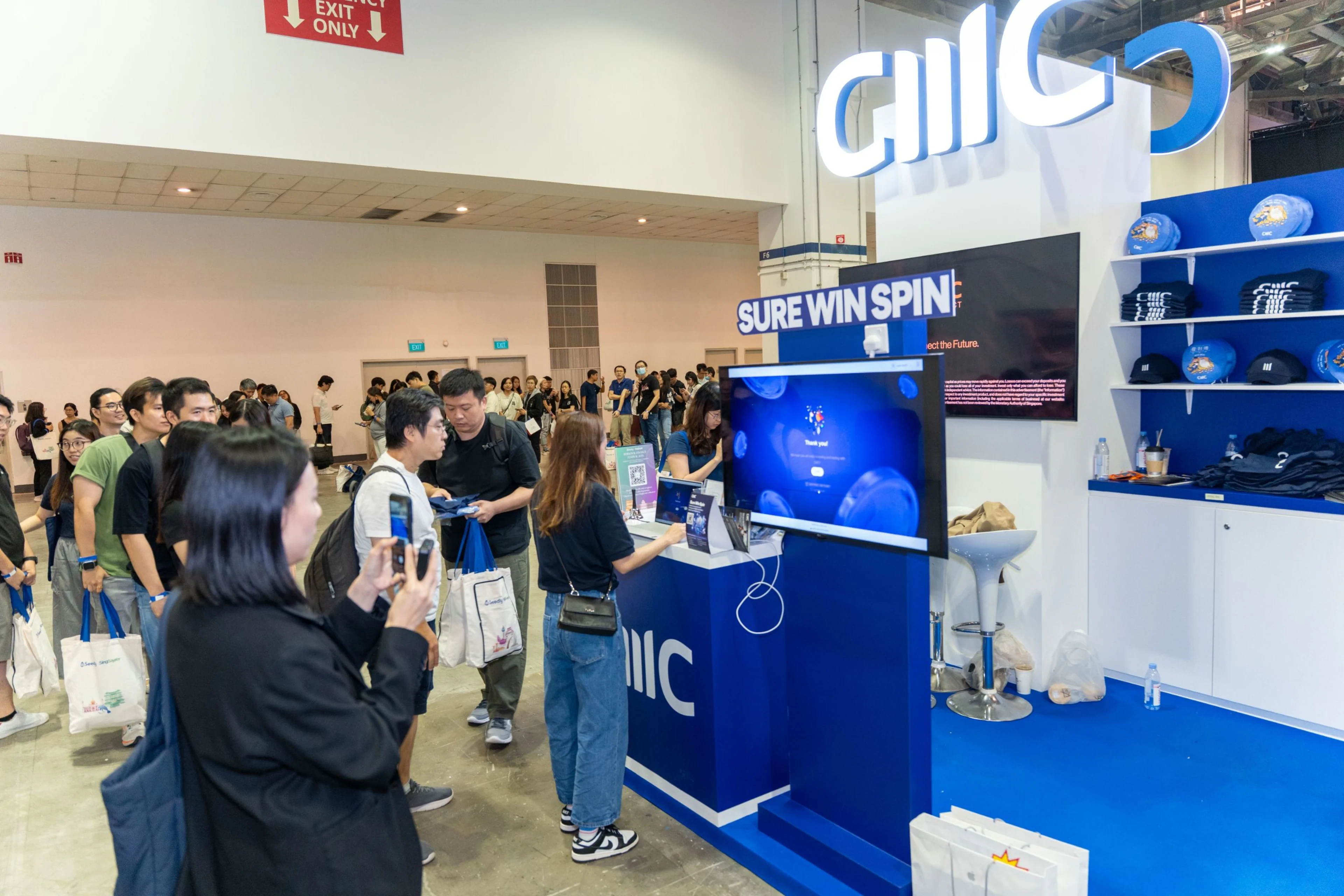 The CMC booth had the longest queue throughout the entire day, with attractive prizes on offer at its sure-win spin game (which also forced attendees into a sure-learn scenario).