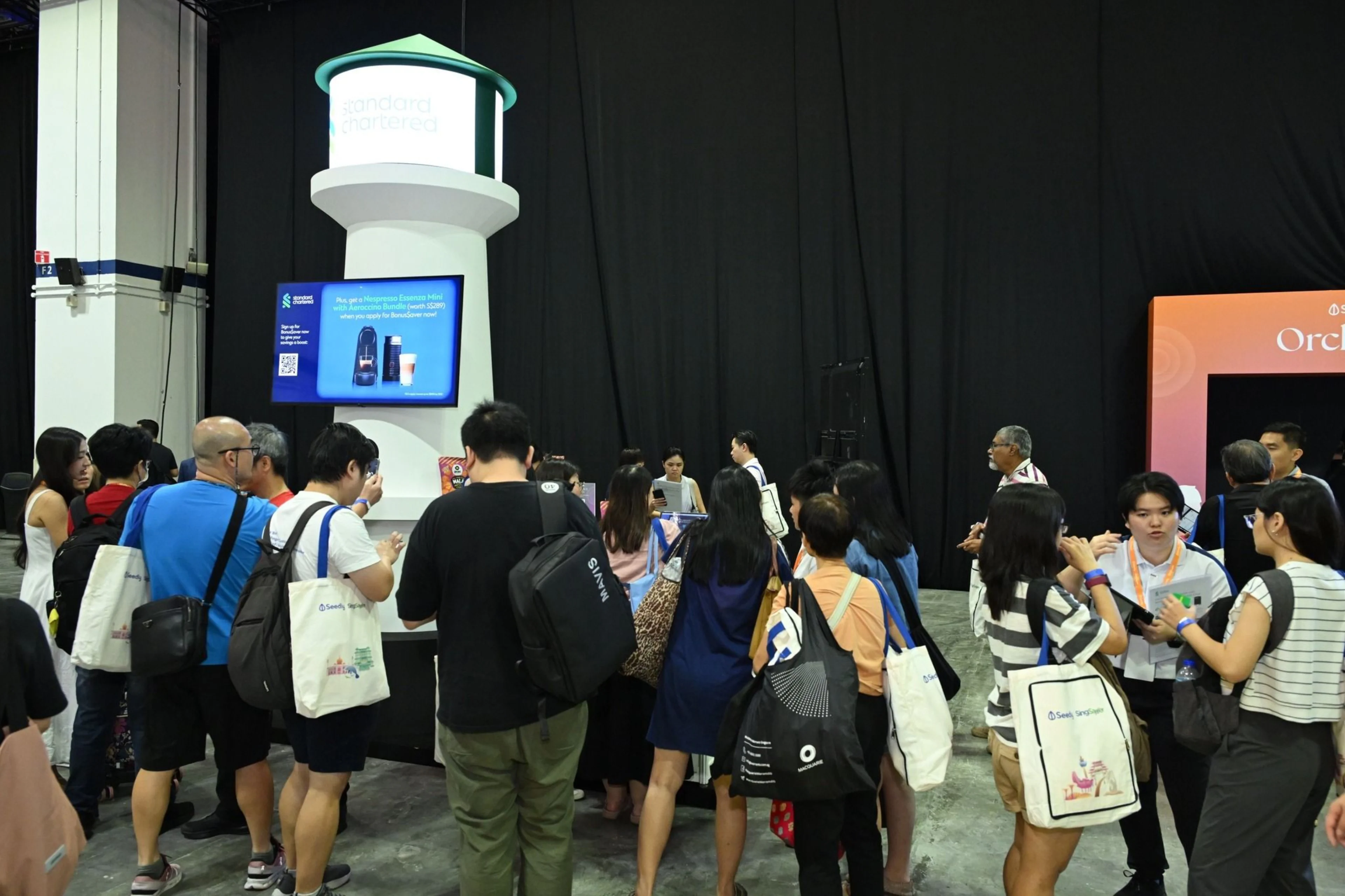 The Longbridge and Standard Chartered booths made for an interesting juxtaposition, with the investment platform’s nautical theme tying in well with the bank’s lighthouse feature.