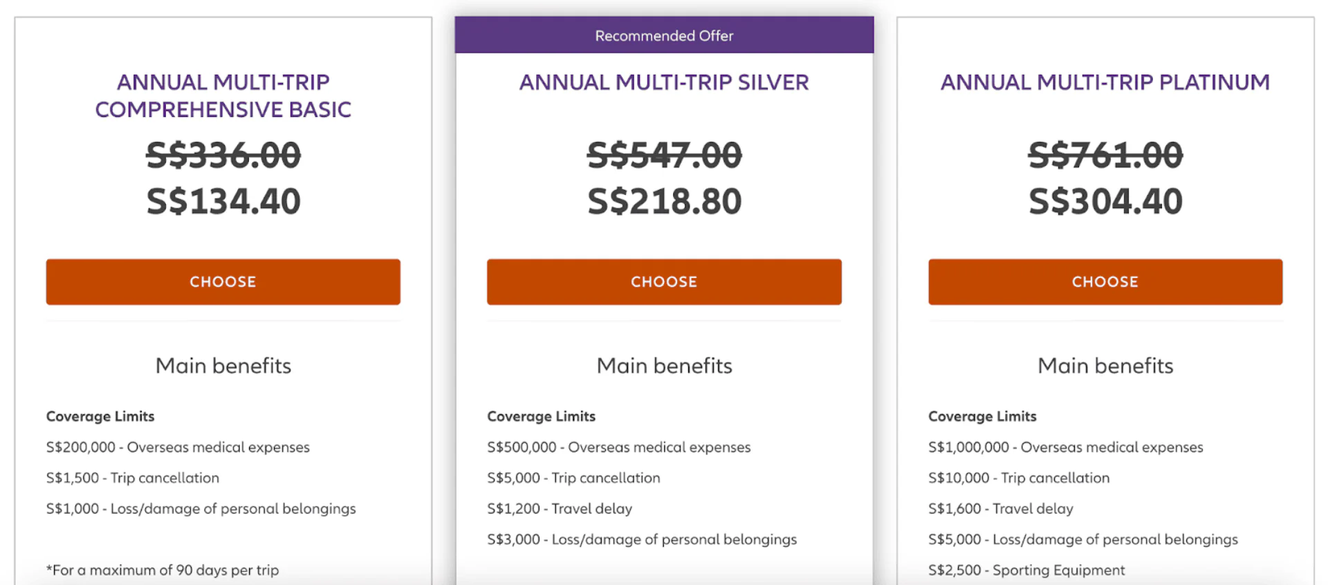 Its Annual Travel Plan is ideal for frequent travellers, including Singaporeans, who take multiple trips throughout the year — with each trip covered for up to 90 days.